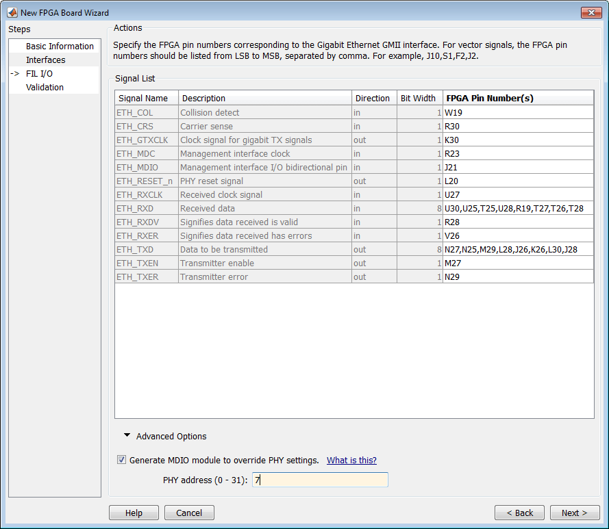 Установите флажок Generate MDIO module to override PHY settings (Создать модуль MDIO).