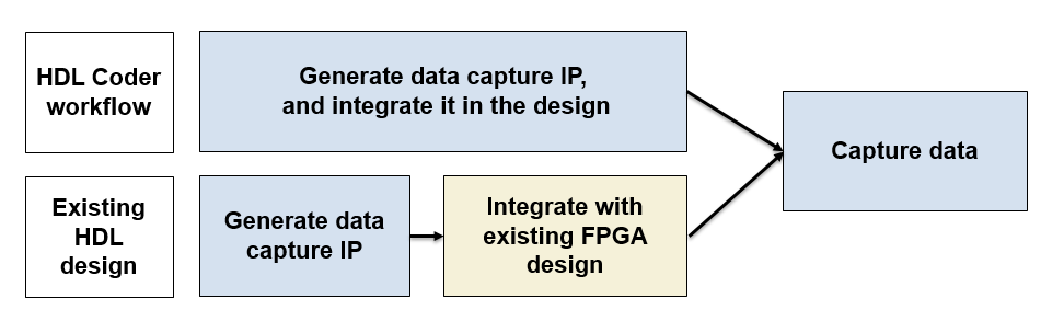 При наличии существующей конструкции ЛПВП используйте инструменты Verifier™ ЛПВП для создания IP-адреса сбора данных. Затем вручную интегрируйте сгенерированный IP-адрес в конструкцию FPGA.
