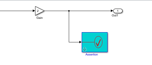 Найдите блок Assertion в дереве Libraries, выбрав HDL Verifier > For Use with DPI-C SystemVerilog. Добавьте этот блок в модель, а затем подключите выход блока усиления к входу блока подтверждения.