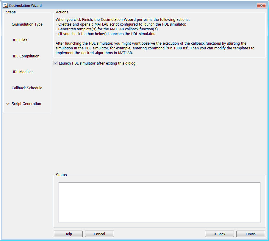 Мастер косимуляции делает поле пути моделирования HDL доступным для редактирования.