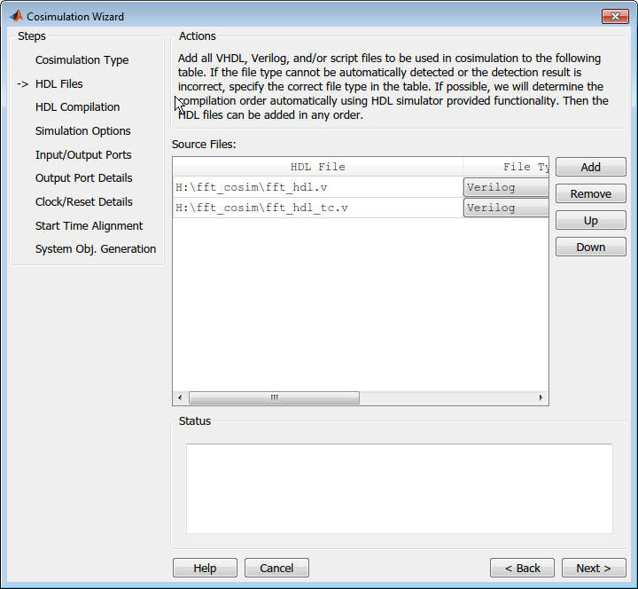 По возможности Мастер Cosimulation Wizard автоматически определит порядок компиляции с помощью функции имитатора HDL. Если симулятор не включает эту функцию, добавьте файлы в том порядке, в котором они должны быть скомпилированы.