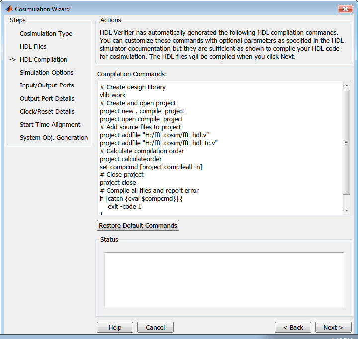 Мастер косимуляции делает поле пути моделирования HDL доступным для редактирования.