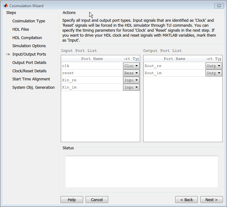 Мастер косимуляции пытается определить типы портов, но можно переопределить любой параметр.