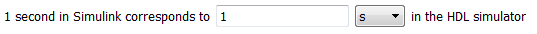 При определении отношения вручную определяется, сколько фемтосекунд, пикосекунд, наносекунд, микросекунд, миллисекунд, секунд или делений в имитаторе HDL составляет 1 секунда в Simulink.