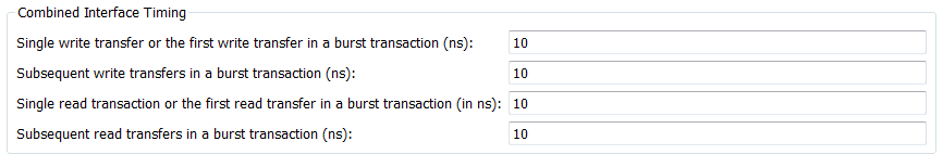 Для всех опций синхронизации укажите требуемое время в наносекундах. Каждый разъем имеет независимые параметры синхронизации. Указанные значения синхронизации реализуются в виде констант в сгенерированном коде. Эта задержка реализуется как wait() функция.