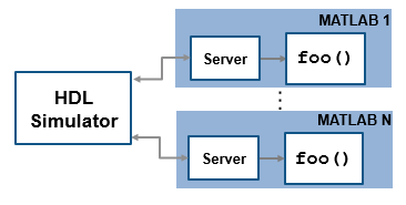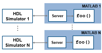 Каждый имитатор HDL должен взаимодействовать с уникальным экземпляром сервера MATLAB.