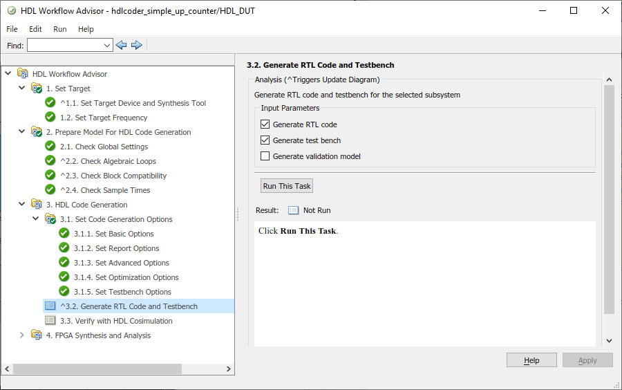 Выполните все шаги в разделе 2 Подготовка модели для создания кода HDL.