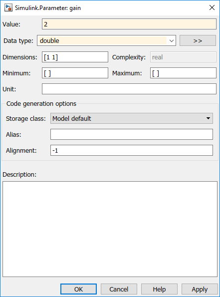 gain = Simulink.Parameter