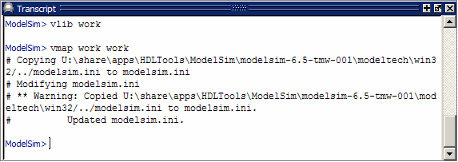 Создайте библиотеку конструкций для хранения результатов компиляции. Для создания библиотеки и требуется _info , введите vlib и vmap команды следующим образом: