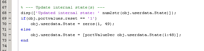 Править callback_fcn.m чтобы раздел внутреннего состояния содержал следующий код: