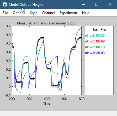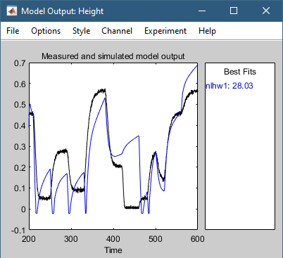 В этой части учебного пособия оценивается модель Хаммерштейна-Винера с определенным порядком модели и параметрами нелинейности. Обычно заказы моделей и задержки выбираются методом проб и ошибок до тех пор, пока модель не получит удовлетворительное соответствие данным.