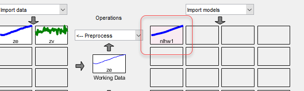 Программа добавляет расчетную модель nlhw1 на плату модели приложения System Identification.
