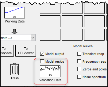 В приложении «Идентификация системы» перетащите значок zv данных проверки в прямоугольник «Данные проверки». Значок ze данных оценки уже обозначен в прямоугольнике рабочих данных.