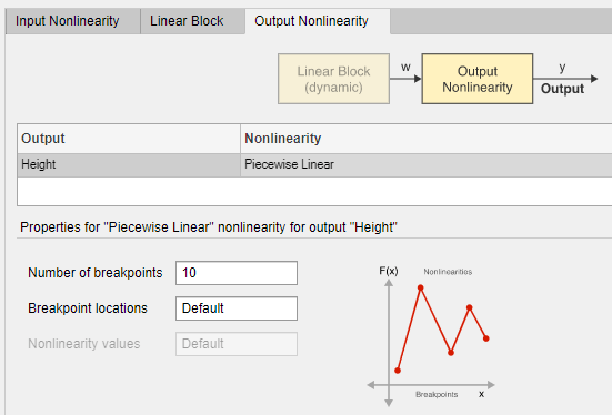 Аналогично входной нелинейности, выходная нелинейность является статической функцией. Нелинейность вывода можно настроить так же, как нелинейность ввода. Можно также удалить нелинейность вывода, так что y (t) = x (t).