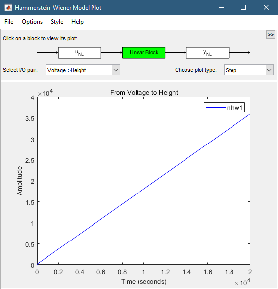 Щелкните прямоугольник «Линейный блок» в верхней части окна «Печать модели Хаммерштейна-Винера».