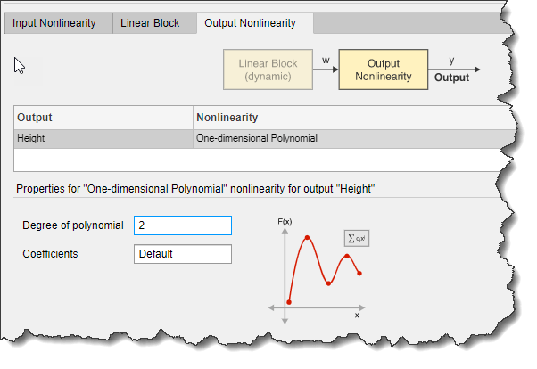 Установите Height вывод нелинейности в One-dimensional Polynomial. Задать степень полинома как 2.