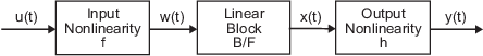 Поскольку f действует на входной порт линейного блока, эта функция называется входной нелинейностью. Аналогично, поскольку h действует на выходной порт линейного блока, эта функция называется выходной нелинейностью. Если система содержит несколько входов и выходов, необходимо определить функции f и h для каждого входного и выходного сигнала. Нет необходимости включать в структуру модели как входную, так и выходную нелинейность. Когда модель содержит только входную нелинейность f, она называется моделью Хаммерштейна. Аналогично, когда модель содержит только выходную нелинейность h, она называется моделью Винера.