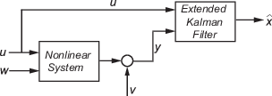 Алгоритм вычисляет оценки состояния ^ нелинейной системы, используя определенные вами функции перехода состояния и измерения. Программное обеспечение позволяет указать шум в следующих функциях как аддитивный или неаддитивный:
