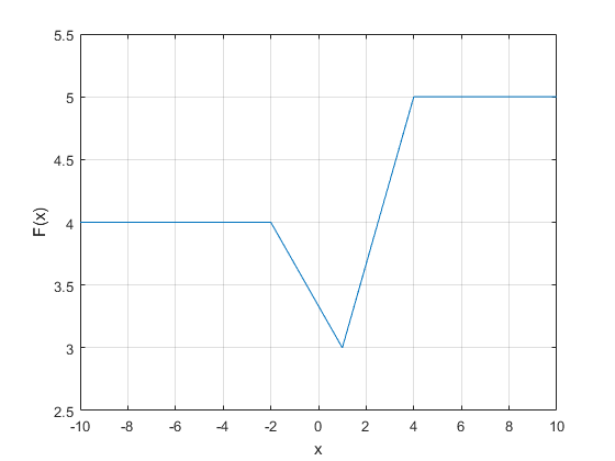 Стоимость F(x) вычисляется с помощью evaluate(NL,x), где NL является pwlinear объект. При использовании evaluate, точки разрыва должны быть инициализированы вручную.