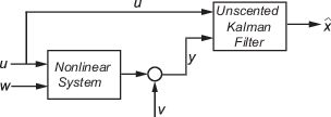 Алгоритм вычисляет оценки состояния ^ нелинейной системы, используя определенные вами функции перехода состояния и измерения. Программное обеспечение позволяет указать шум в следующих функциях как аддитивный или неаддитивный: