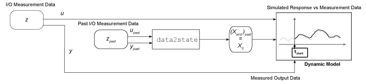 Использование прошлых данных в качестве прокси для начальных условий при использовании sim или predict. При выполнении моделирования модель вызывает внутренний вызов data2state для тебя. Пример см. в разделе Понимание использования исторических данных для моделирования модели.