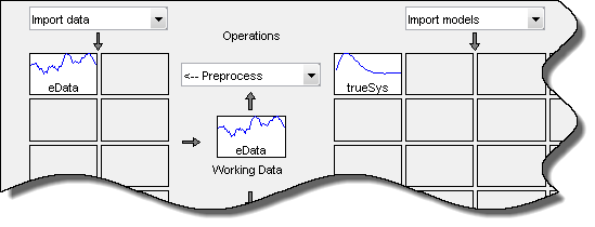 Сеанс импортирует следующие данные и модель в приложение System Identification: