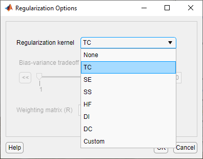 В диалоговом окне «Параметры регуляризации» выберите TC из выпадающего списка Regularization Kernel.