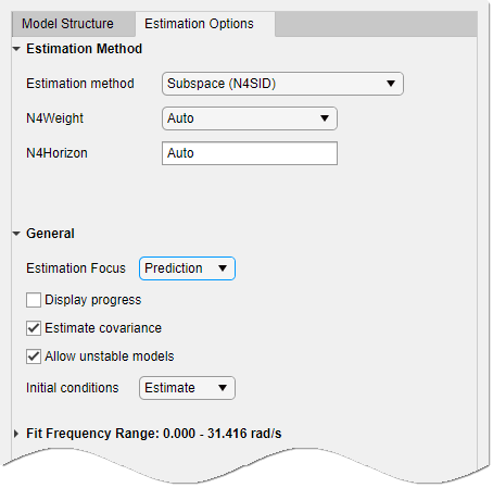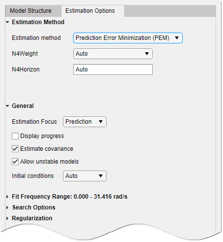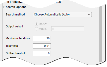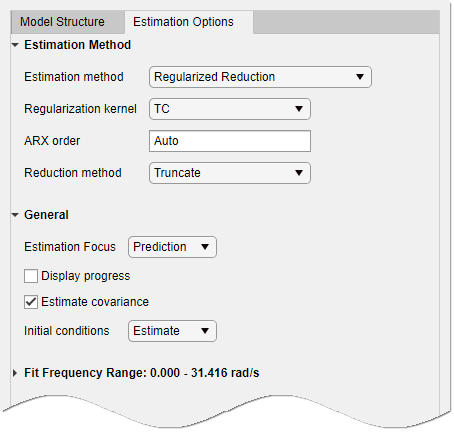 Вы можете указать, как алгоритм оценки взвешивает подгонку на различных частотах и какой диапазон частот использует приложение. В приложении установите для параметра Estimation Focus один из следующих параметров: