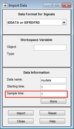 Можно также использовать время выборки в качестве флага для определения данных непрерывного времени. При импорте данных частотной области непрерывного времени или частотного отклика установите для параметра Sample time значение 0.