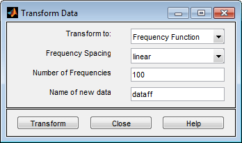 В приложении System Identification данные временной области имеют значок с белым фоном. Данные временной области можно преобразовать в данные частотной области или частотного отклика. Значения частоты результирующего частотного вектора находятся в диапазоне от 0 на частоту Найквиста ¼ Ts, где Ts - время выборки.