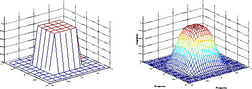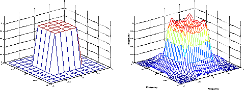 Желательная двумерная частотная характеристика (слева) и фактическая двумерная частотная характеристика (справа)
