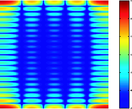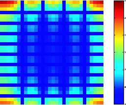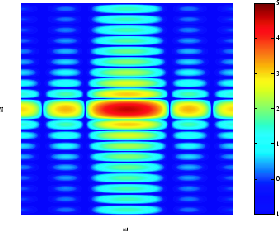 imshow(log(abs(F)),[-1 5]); colormap(jet); colorbar