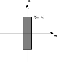 Для иллюстрации рассмотрим функцию f (m, n), которая равна 1 в прямоугольной области и 0 везде. Для упрощения диаграммы f (m, n) показана как непрерывная функция, даже если переменные m и n являются дискретными.