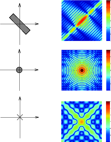 Примеры преобразования Фурье для других простых форм показаны ниже.
