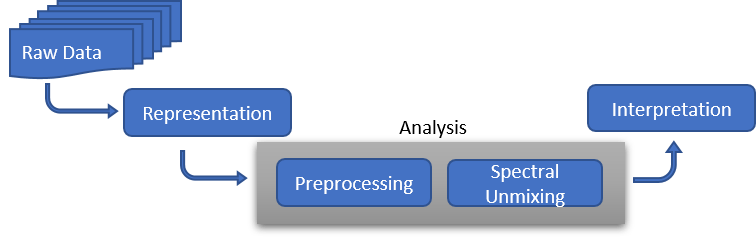 Датчики гиперспектрального изображения обычно имеют высокое спектральное разрешение и низкое пространственное разрешение. Пространственные и спектральные характеристики полученных гиперспектральных данных характеризуются их пикселями. Каждый пиксель является вектором значений, которые задают интенсивности в местоположении (x, y) в z различных диапазонах. Вектор известен как пиксельный спектр, и он определяет спектральную сигнатуру пикселя, расположенного в (x, y). Спектры пикселей являются важными признаками в анализе гиперспектральных данных. Но эти пиксельные спектры искажаются из-за таких факторов, как шум датчика, атмосферные эффекты и низкое разрешение.