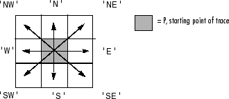 bwtraceboundary функция реализует алгоритм трассировки Мура-Соседа, модифицированный критериями остановки Джейкоба. Эта функция основана на boundaries функция представлена в первом издании «Digital Image Processing Using MATLAB» Гонсалеса, Р. К., Р. Э. Вудса и С. Л. Эддинса, Нью-Джерси, Пирсон Прентис Холл, 2004.
