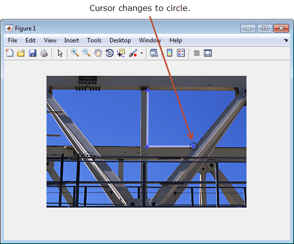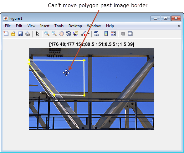 , когда он располагается над изображением. Щелкните и перетащите мышь, чтобы определить вершины многоугольника и скорректировать размер, форму и положение многоугольника. По умолчанию impoly рисует прямую линию, соединяющую последнюю нарисованную точку с первой точкой, но управлять этим поведением можно с помощью Closed параметр.
