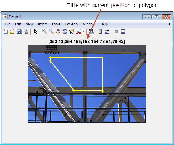 | Получение координат вершин | Переместите указатель внутрь полигона. Щелкните правой кнопкой мыши и выберите «Копировать положение» в контекстном меню. impoly копирует массив n-by-2, содержащий координаты x и y каждой вершины, в буфер обмена. n - указанное число вершин. |