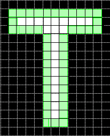 'Perimeter' | Расстояние вокруг границы области возвращено как скаляр. regionprops вычисляет периметр путем вычисления расстояния между каждой смежной парой пикселей вокруг границы области. Если изображение содержит несмежные области, regionprops возвращает непредвиденные результаты. На этом рисунке показаны пикселы, включенные в расчет периметра для этого объекта.
