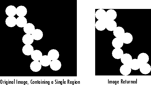 'Image' | Изображение того же размера, что и ограничивающая рамка области, возвращаемое как двоичное (logical) массив. on пикселы соответствуют области, а все остальные пикселы off. | Да | Да | Да |