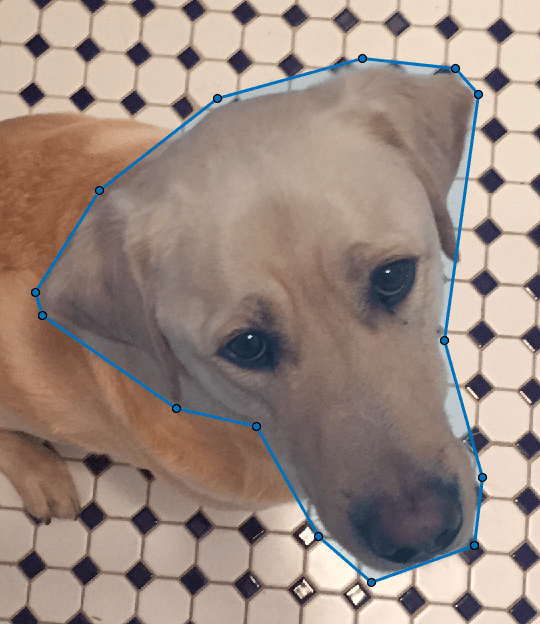 Можно создавать объекты ROI, представляющие ROI различных форм, включая окружности, эллипсы, многоугольники, линии, полилинии, прямоугольники и рисованные вручную фигуры. Можно также рисовать произвольные фигуры, которые получают «помощь» от нижележащего изображения, автоматически следуя контуру кромок. На этом рисунке отображается многоугольная окупаемость инвестиций, нарисованная поверх изображения.