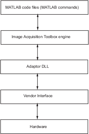 Адаптер - это библиотека динамических ссылок (DLL), называемая общей библиотекой в системах Linux, которая реализует соединение между движком Image Acquisition Toolbox и драйвером устройства через комплект разработки программного обеспечения (SDK) поставщика.