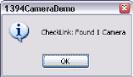 Демонстрационное приложение отображает результаты этого поиска во всплывающем окне сообщения. В следующем примере демонстрационное приложение обнаружило камеру. Нажмите кнопку ОК, чтобы продолжить.