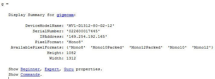 executeCommand(g, ' выполняет указанную команду для камеры GigE Vision ®commandname')g, где g является объектом, созданным с помощью gigecam функции, и 'commandname' - имя выполняемой команды.