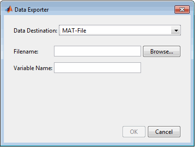 Если выбран MAT-File или MATLAB Workspace, затем введите имя новой переменной в поле Имя переменной и нажмите кнопку ОК.