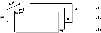 NumberOfBands свойство указывает количество цветовых областей в данных, которые требуется получить. Панель инструментов определяет полосу в качестве третьего размера в массиве 3-D, как показано на этом рисунке.