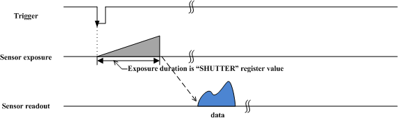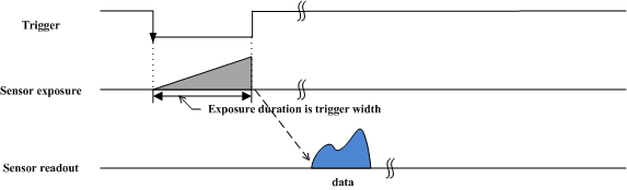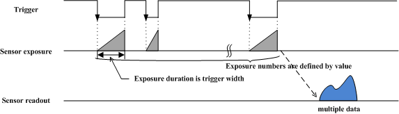 Камера начинает интеграцию входящего света от внешнего входного заднего края триггера. Время интеграции равно времени низкого состояния входа внешнего триггера, если triggersource является fallingEdge, в противном случае он равен высокому времени состояния.