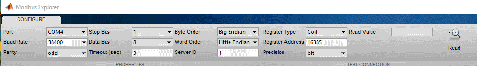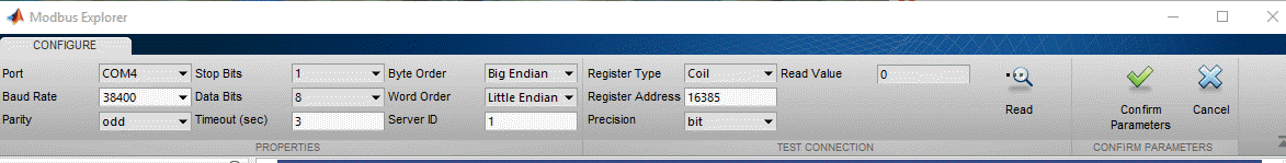 Откройте Modbus Explorer. На вкладке MATLAB Apps в разделе Test & Measurement выберите Modbus Explorer.