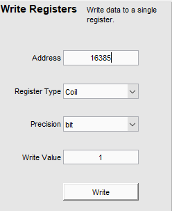 Address: 16387 Type: Coil Precision: bit Write Value: 1