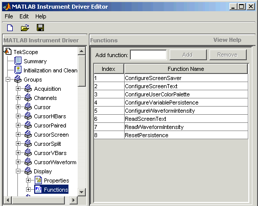 Редактор драйверов приборов MATLAB позволяет выполнять следующие действия: